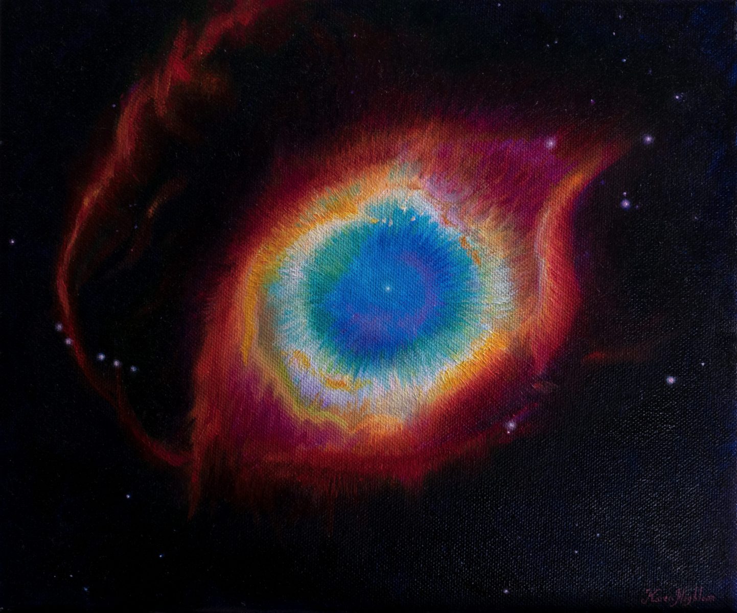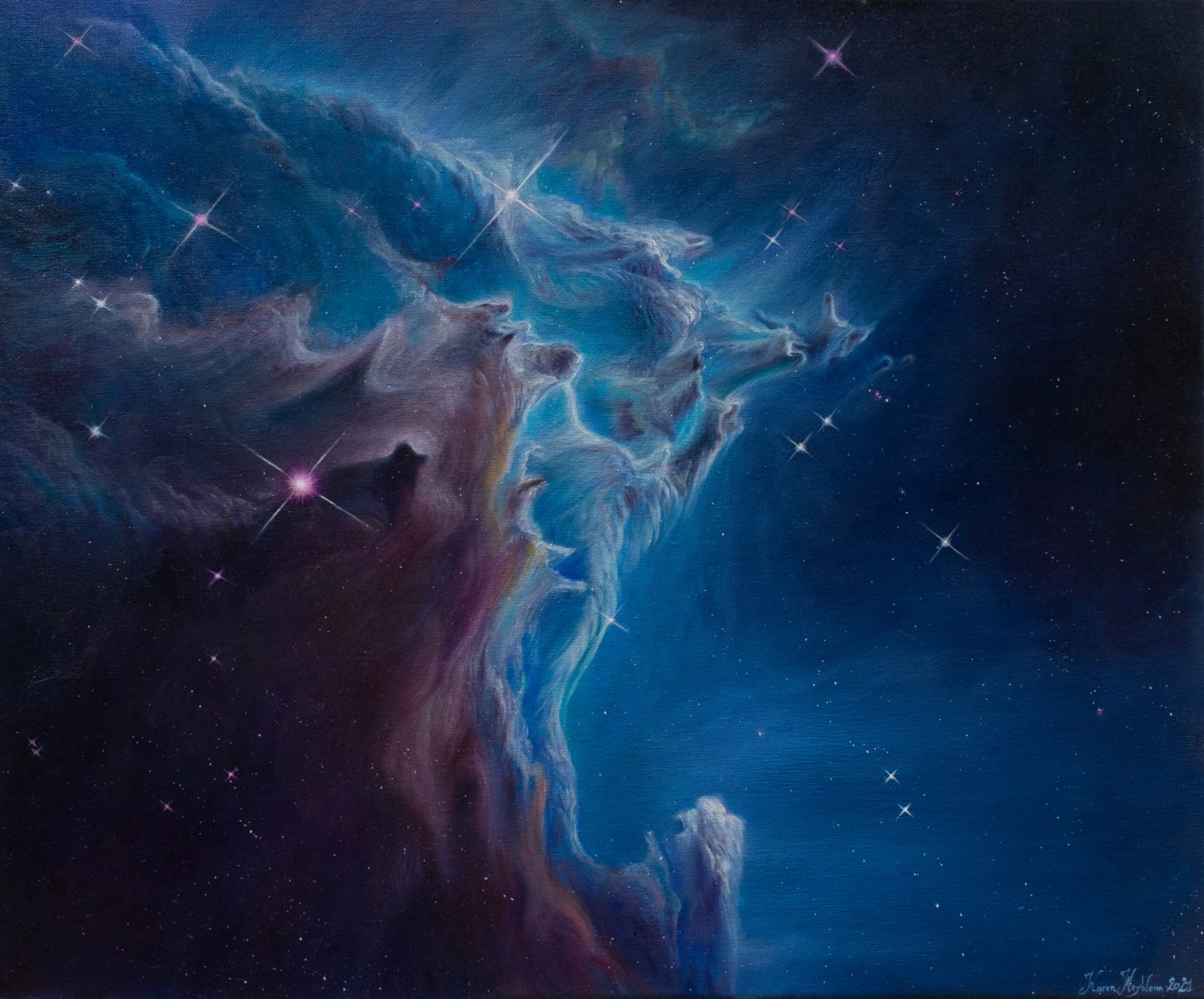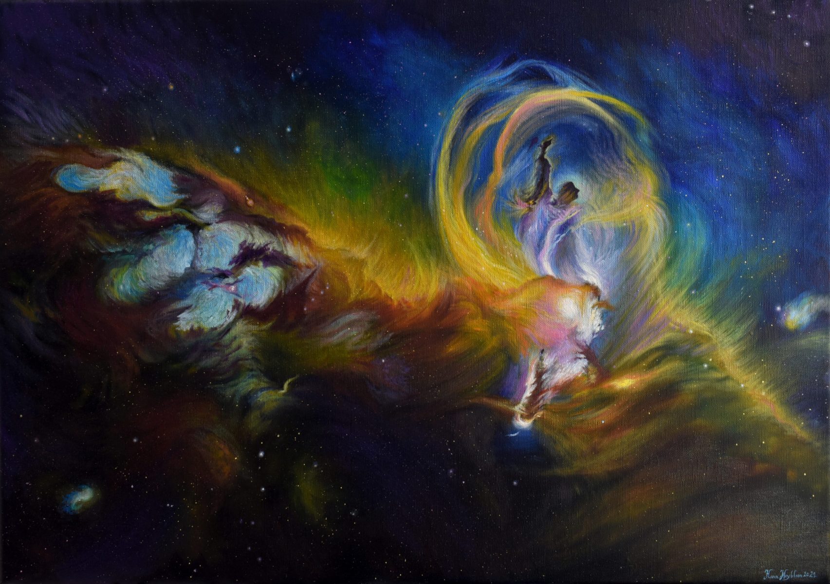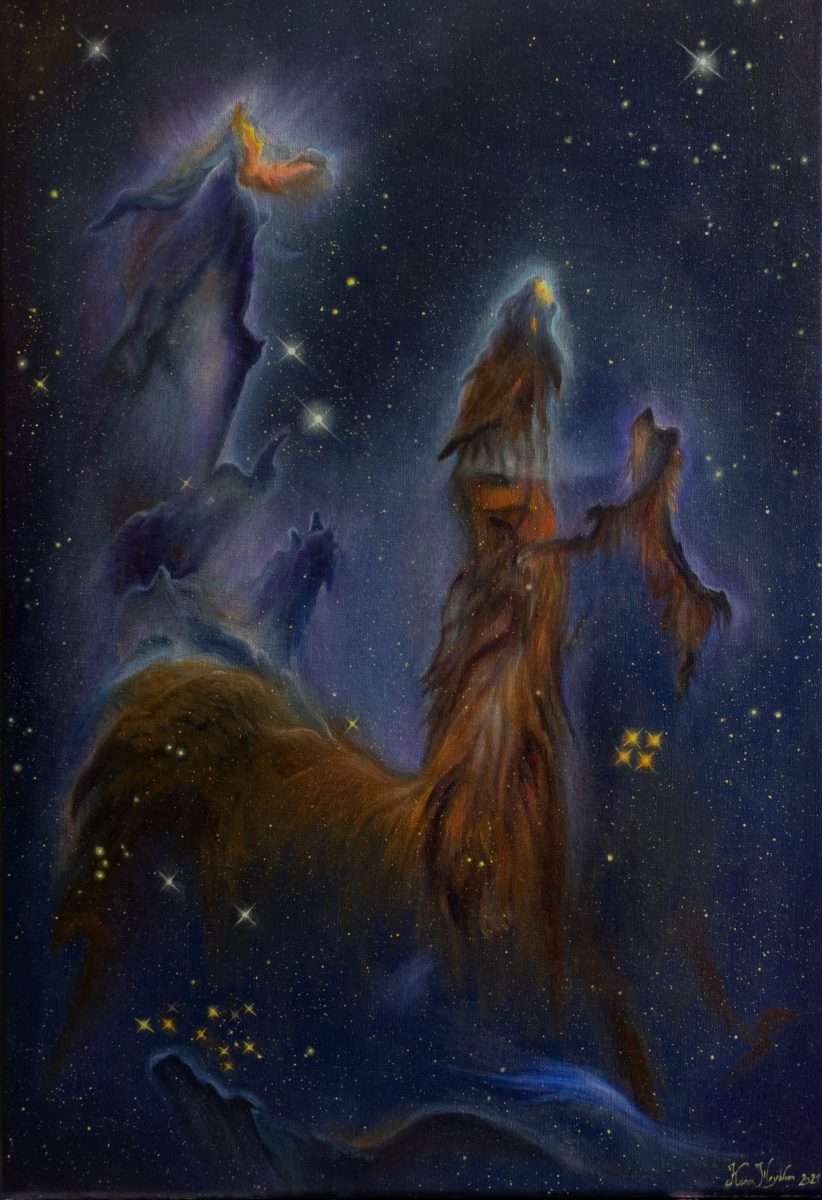 Je m’appelle Karen Heyblom, je suis artiste peintre depuis plus de 10 ans. Vous trouverez sur ce site une grande partie de mes œuvres souvent orientées vers l’espace, les nébuleuses et les exoplanetes, les mondes que je développe et autres rêveries empreintes de mystère.