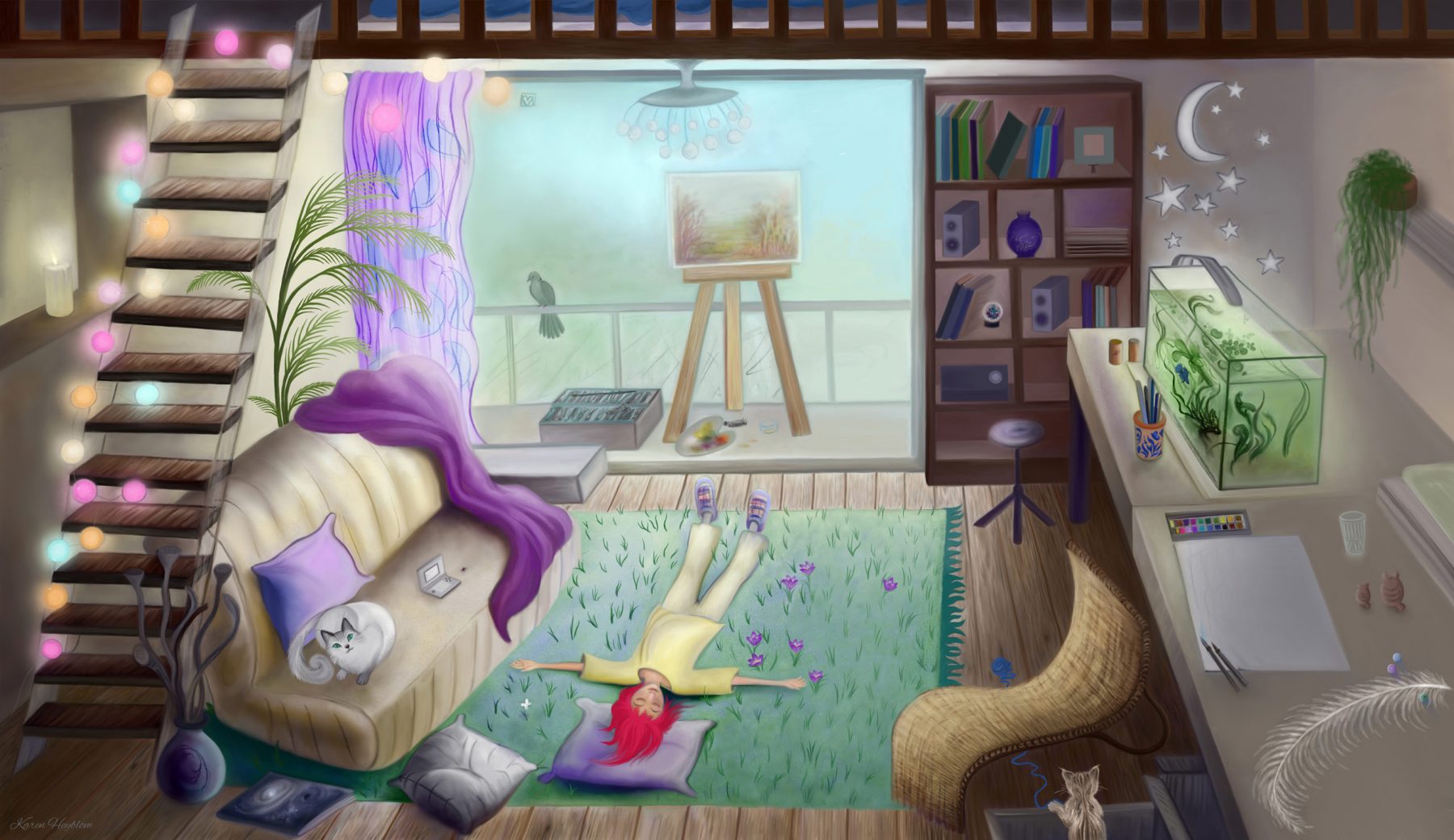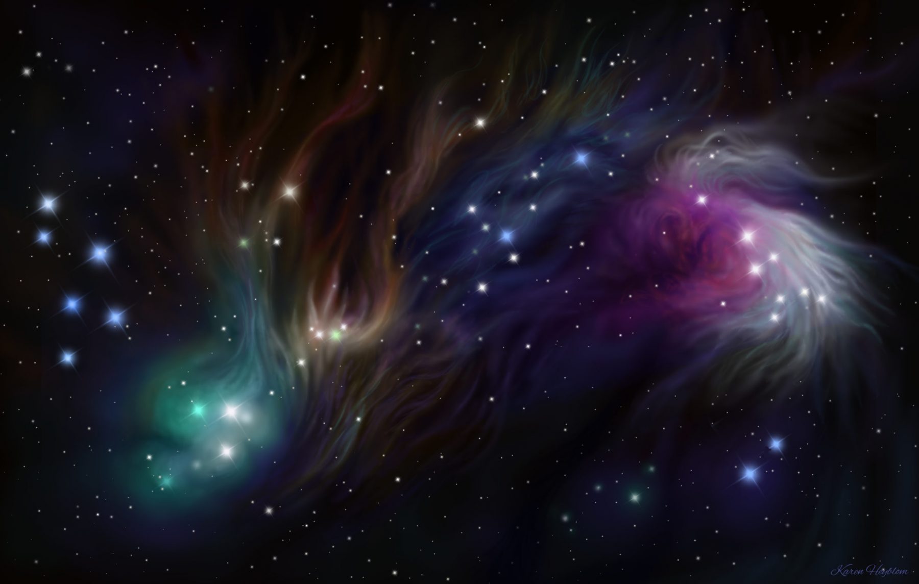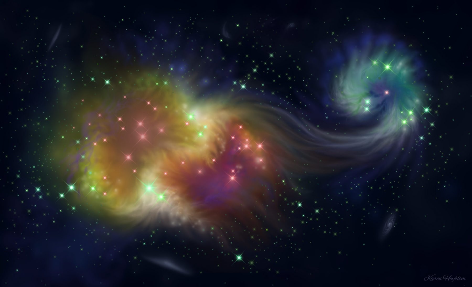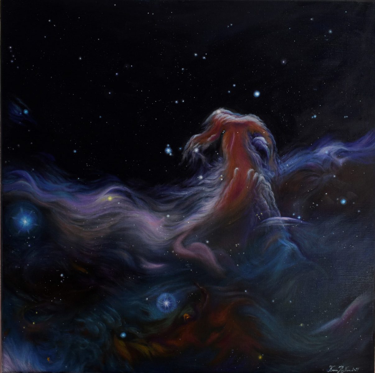 Je m’appelle Karen Heyblom, je suis artiste peintre depuis plus de 10 ans. Vous trouverez sur ce site une grande partie de mes œuvres souvent orientées vers l’espace, les nébuleuses et les exoplanetes, les mondes que je développe et autres rêveries empreintes de mystère.